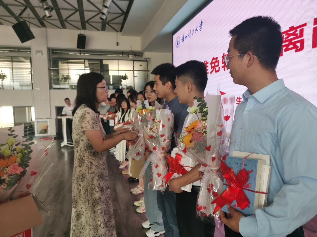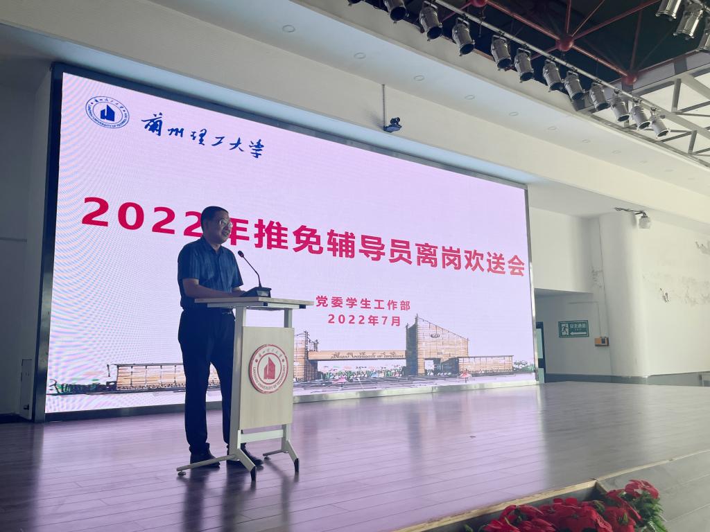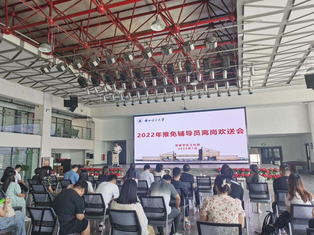 7月7日上午,学校在兰工坪校区大学生活动中心举行推免辅导员离岗欢送会,学校党委副书记丁虎生、工会常务副主席田波、学生工作部副部长李荣华、各学院副书记、2021年入职辅导员和即将离岗的推免辅导员参加了欢送会,会议由学生工作部部长孙伟国主持。