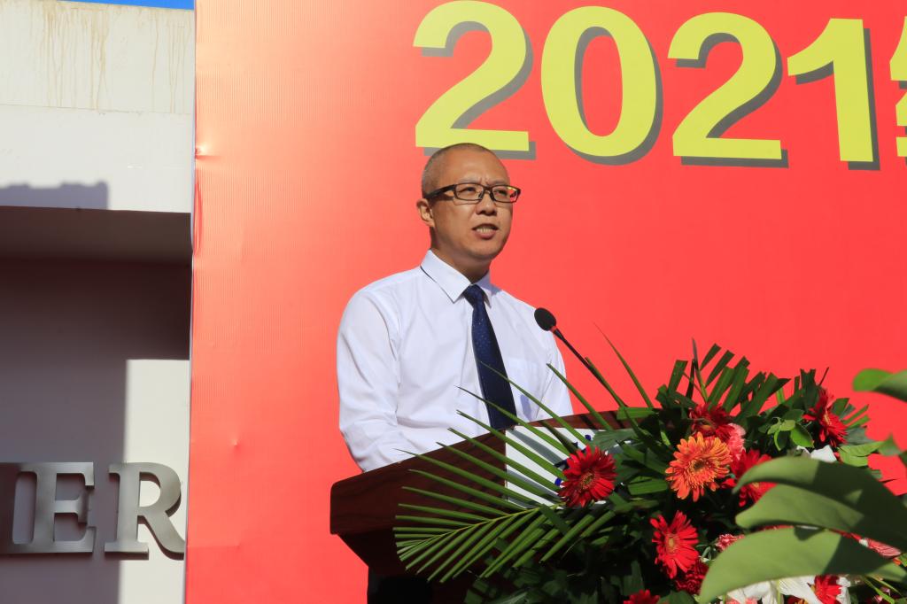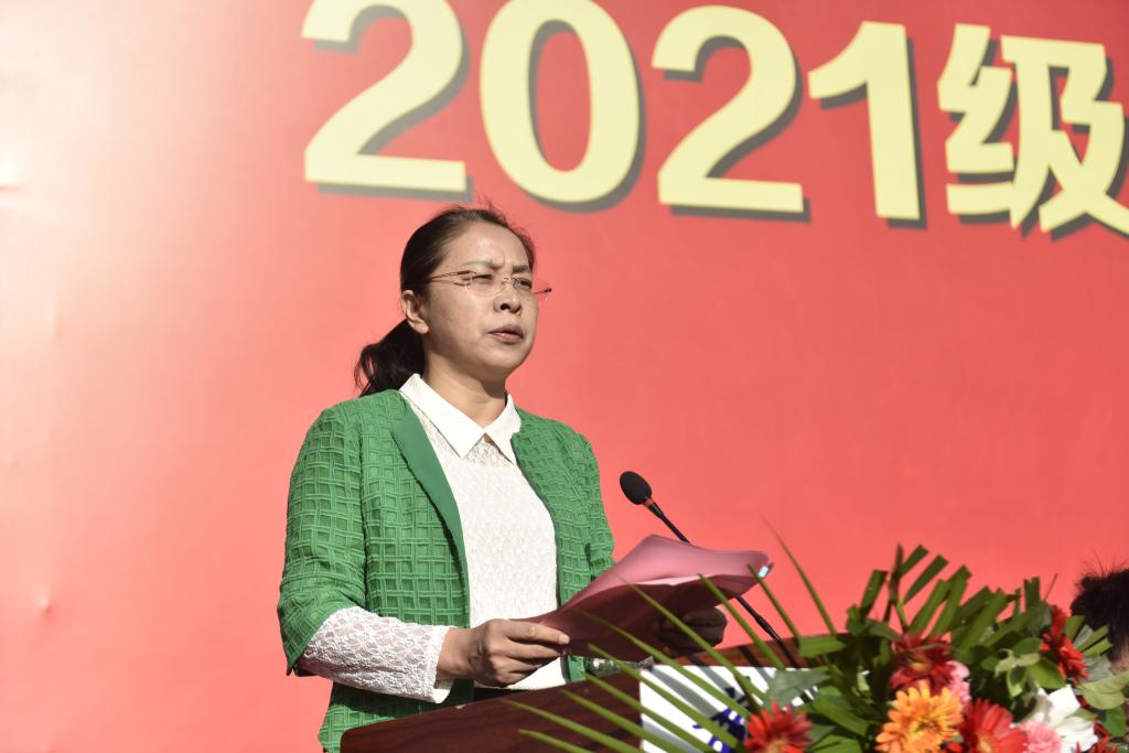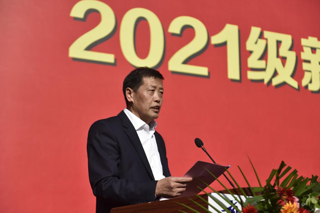 新生代表,外国语学院2021级俄语专业赵子琪代表2021级全体同学发言,表达了成为一名理工大人的骄傲自豪和喜悦之情,表示要努力学习知识、增长才干,肩负起当代大学生的历史使命,坚定理想、勇往直前,以青春之我、奋斗之我,为民族复兴铺路架桥,为祖国建设添砖加瓦。