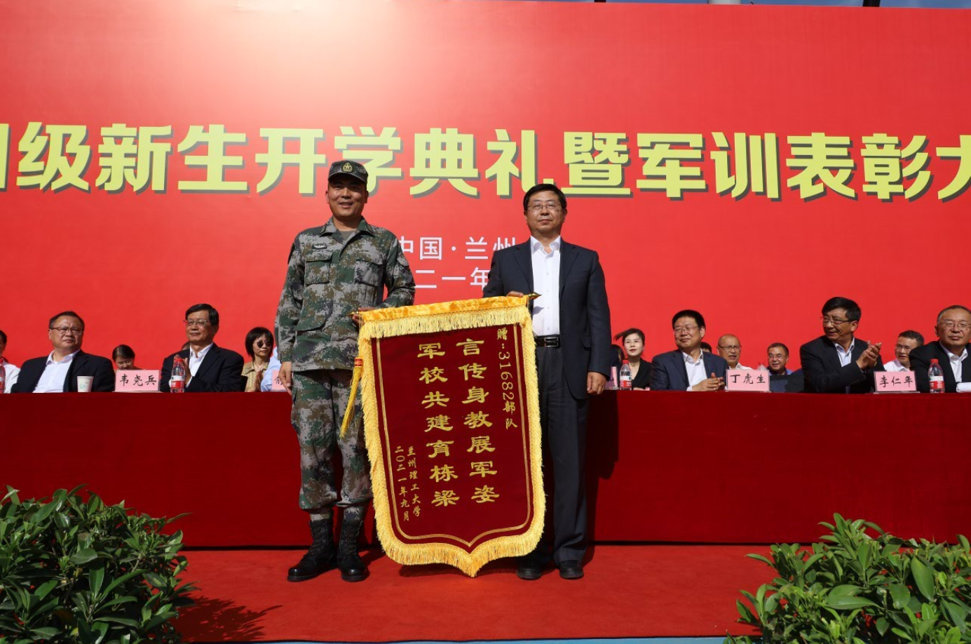 9月30日上午,兰州理工大学2021级新生开学典礼暨军训表彰大会在彭家坪校区田径场举行。学校党委书记夏天东,学校党委副书记、校长芮执元,党委常委、副校长俞树荣,党委副书记丁虎生,党委常委、副校长韦尧兵,副校长李仁年,党委常委、副校长王全进,党委常委、副校长曹洁,党委常委、副校长宋琦,31682部队副政治委员吴君上校,31682部队副参谋长、2021级学生军训团团长王伏岗中校及各相关职能部门、各二级学院领导、老师以及2021级全体新同学参加了开学典礼。开学典礼由曹洁主持。