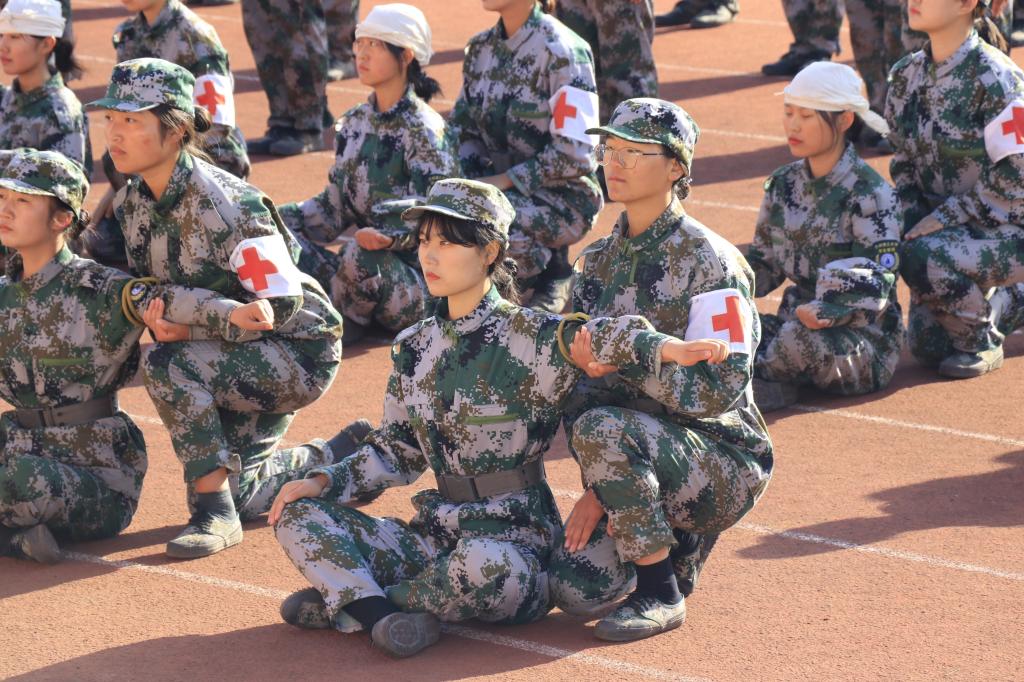 典礼上进行了分列式、战场救护、持枪方阵和军体拳等军训成果简要展示,分列式方阵以饱满的精神、整齐的队列,铿锵的步伐依次通过主席台,接受检阅;战场救护演练主要从止血、包扎、固定、心肺复苏等四个内容进行;持枪方阵和军体拳主要应对瞬息万变的战场情况进行打击演练。通过军训成果展示,充分体现了广大教官以身作则,精心组织,科学施训;学生工作干部立足岗位,尽职尽责,全力保障;参训学生守纪律,讲规矩,听指挥,做表率,不怕吃苦,勤学苦练,形成了团结向上、勇于进取、创先争优的良好氛围。为表彰先进,巩固军训成果,与会领导为获奖集体和个人颁奖。