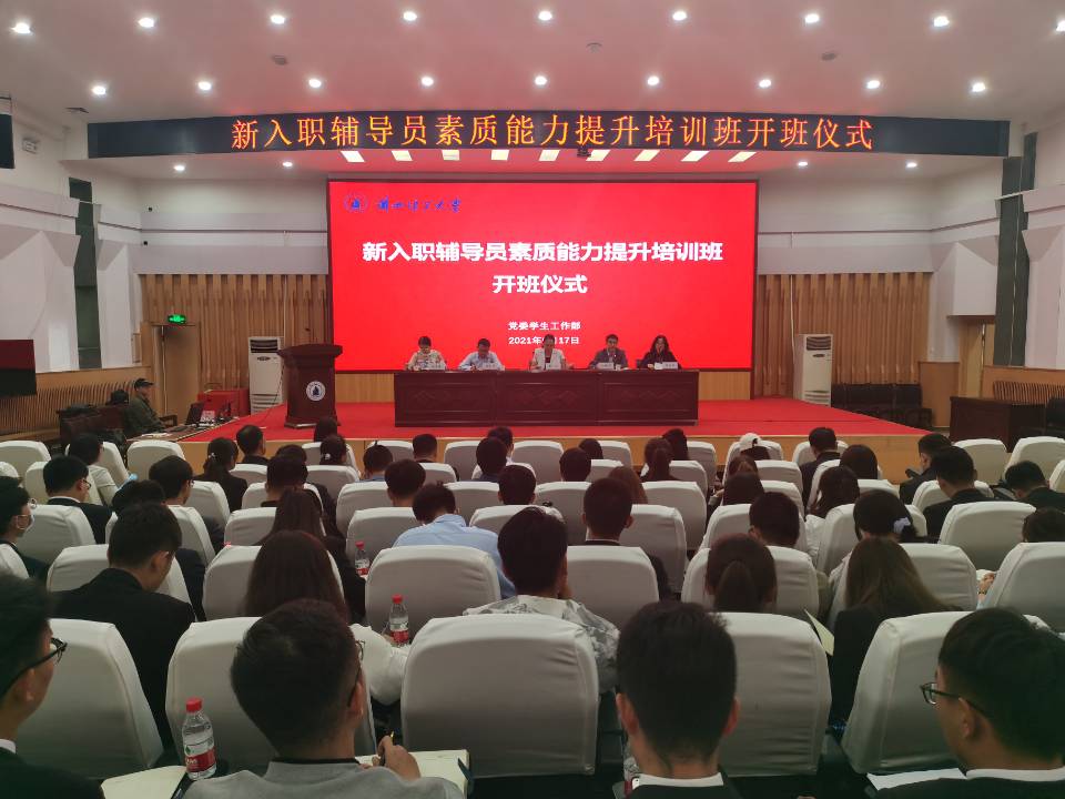 9月17日上午,学校在兰工坪校区逸夫科技馆二楼报告厅举行新入职辅导员素质能力提升培训班开班仪式,学校党委常委、副校长曹洁,党委学生工作部、学生就业指导服务中心、校团委主要负责人,各学院副书记和近两年新入职辅导员70余人参加了开班仪式,开班仪式由孙伟国部长主持。