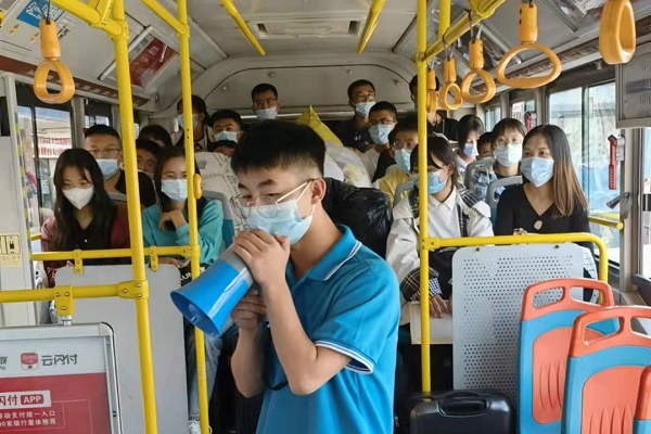 到站学生上车前,接站人员严格落实学校“一核二查三测四采五通过”的学生返校流程,有序引导学生消杀行李、核实身份、检测体温、查验健康码和行程卡及核酸检验阴性证明等流程,切实构建校园健康屏障,巩固来之不易的疫情防控成果。在接站工作组和返校学生的全力配合下,此次接站工作开展以来,5天时间共接送学生7000余人次,累计派出车辆上百班次,整个接站工作实现无缝对接,顺利完成了返校学生接站的任务。