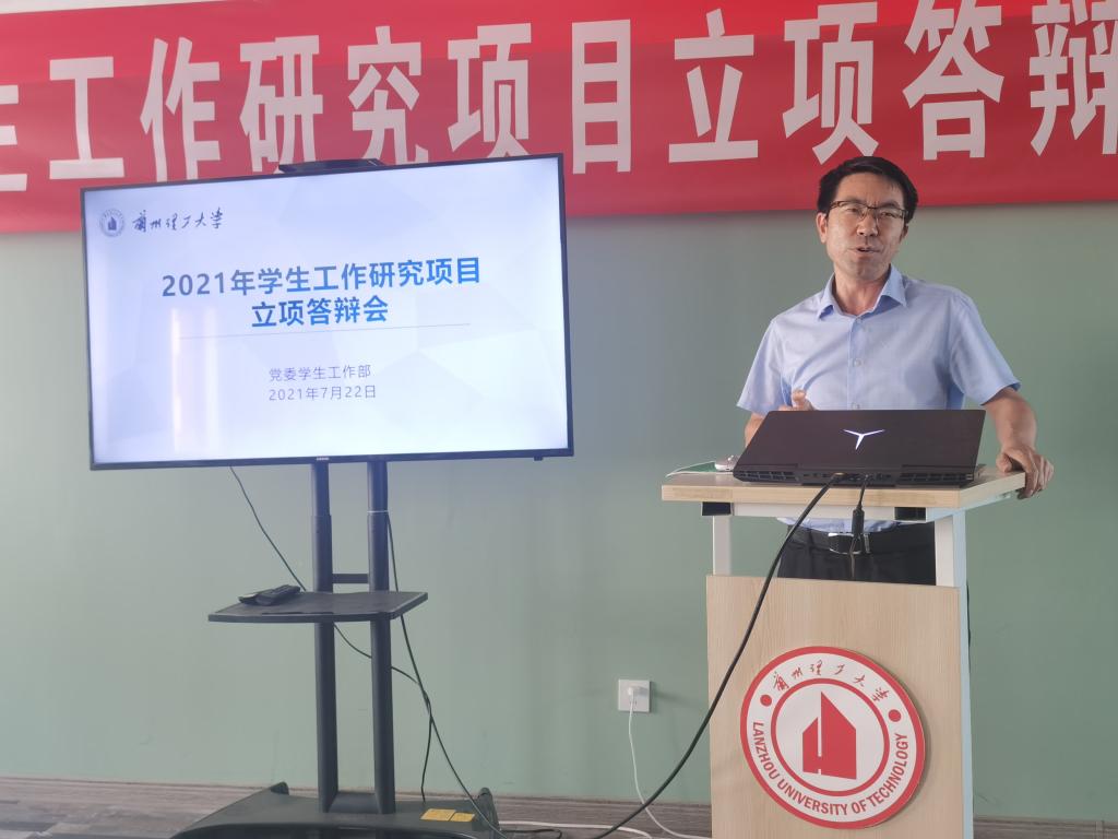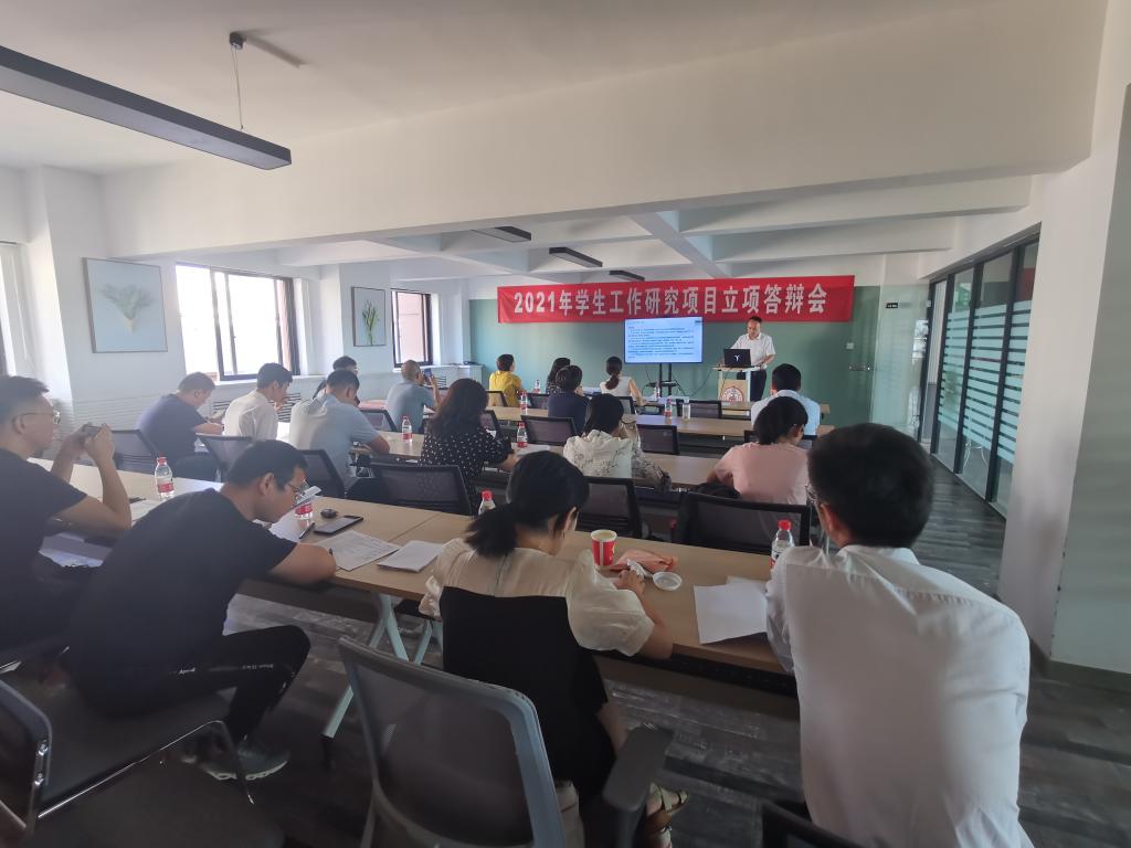 为进一步提升我校辅导员工作水平,推进辅导员队伍专业化、职业化建设,7月23日上午,学工部在兰工坪校区大学生活动中心4106室举办了2021年学生工作研究项目立项答辩会,学生工作部部长孙伟国、副部长李荣华和22位副书记、辅导员参加了答辩会,答辩会邀请了马克思主义学院高瑛副教授、王莉莉老师担任评委。