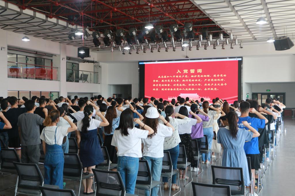 会后,师生党员代表一起举起右拳重温了入党誓词,大家齐声高呼三遍“请党放心,强国有我”,8字誓言铿锵有力,这响亮的青春誓言在大学生活动中心久久回荡,表达了青年学子对党的誓言,新的百年,听党话感党恩,跟党走。
