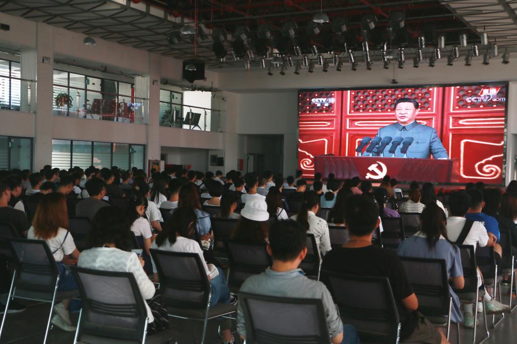 外语学院2019级外国语言学及应用语言学研究生代表、预备党员赵斐说,作为新时代青年,我们要练就过硬的本领,勇担时代重任。以中华民族伟大复兴为己仁,不负韶华,不负党和人民的殷切期望。祝福中国共产党生日快乐。材料学院2020级材料加工工程专业研究生党员代表马科说,我们将接好历史的接力棒,继续发扬党的优良传统,为实现中华民族伟大复兴奉献自己的力量。能动学院2020级机械电子工程专业研究生代表任禄说,观看了庆祝中国共产党成立100周年大会令我心潮澎湃、斗志昂扬。100年前的中国处在水深火热之中,100年后的中国国富民强。我坚信在中国共产党的正确领导下,中华民族伟大复兴中国梦一定能够实现!经管学院19级会计专业研究生党员代表行少栋说,感谢、感激、感恩中国共产党,建党百年,祝伟大的中国共产党万岁,伟大的中国人民万岁。请党放心,强国有我!