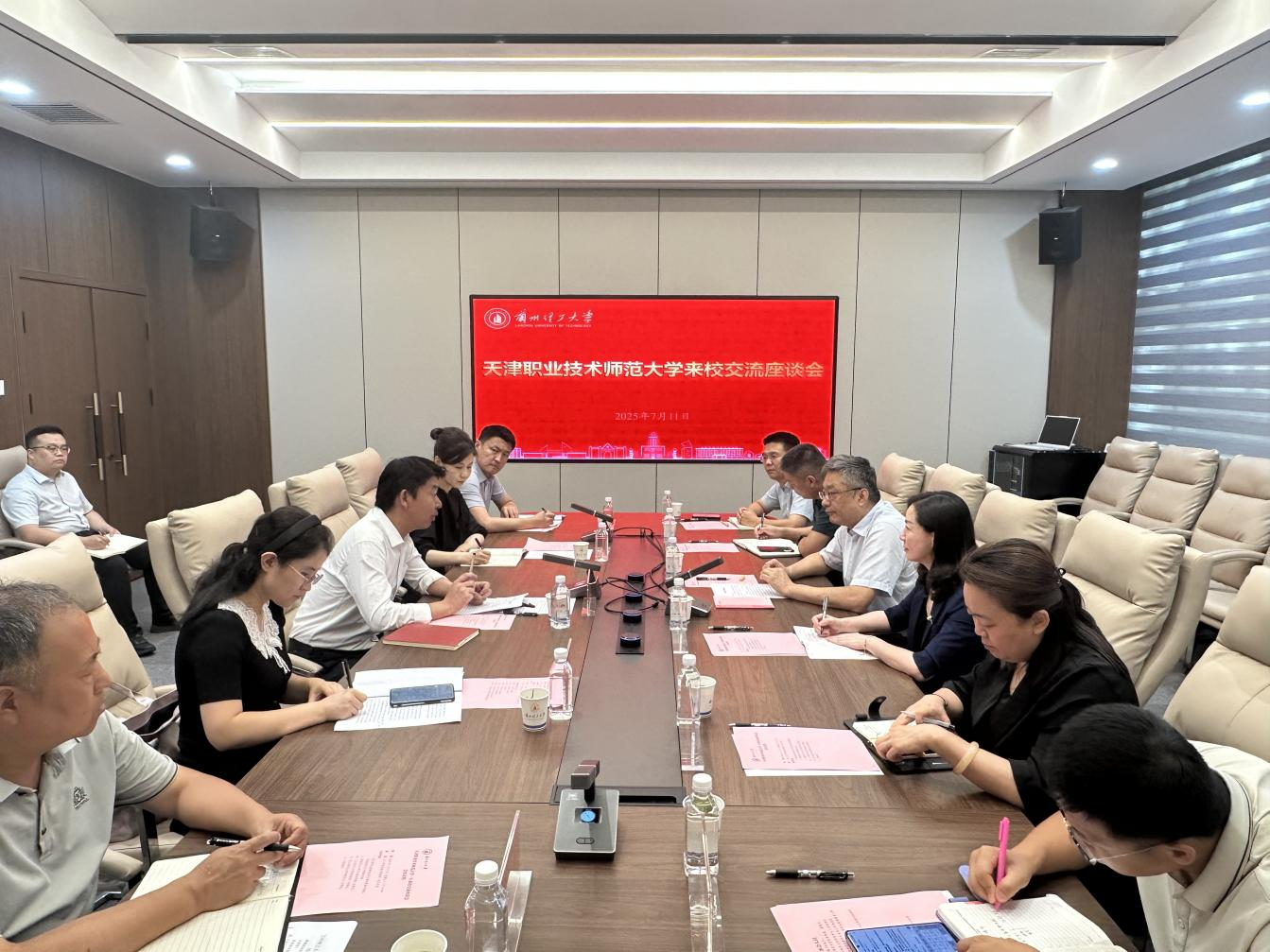 7月11日下午,天津职业技术师范大学党委常委、副校长李富森一行来我校调研。座谈会由学校党委常委、副校长张立峰主持。学校党委学生工作部、党委保卫工作部与校团委相关负责人参加了调研活动。