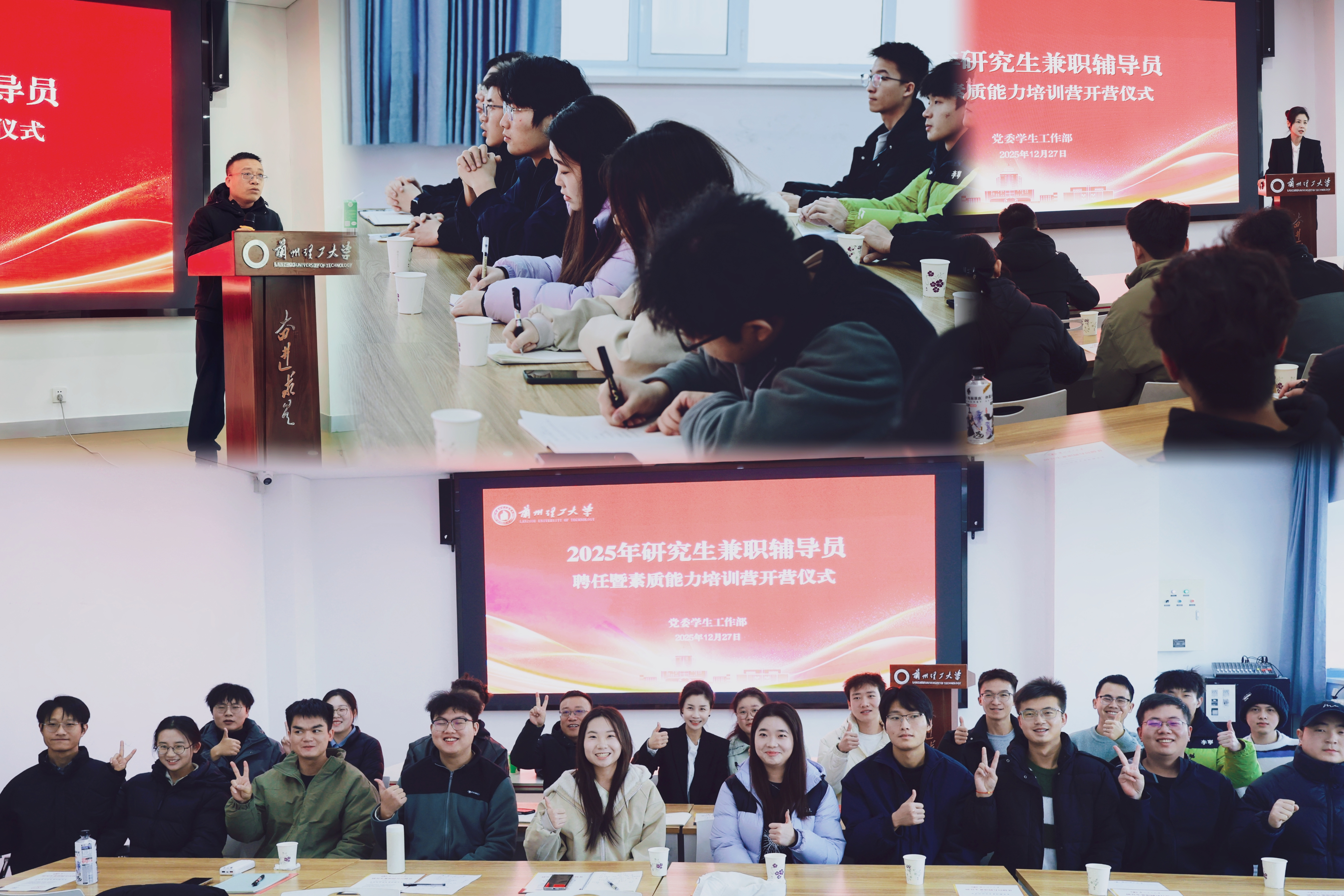 2025年12月27日上午,学校2025-2026学年研究生兼职辅导员聘任暨素质能力培训营开营仪式在彭家坪校区易班业务培训室顺利举行。党委学生工作部负责人、研究生教育管理科老师、全体新聘研究生兼职辅导员参加活动。
