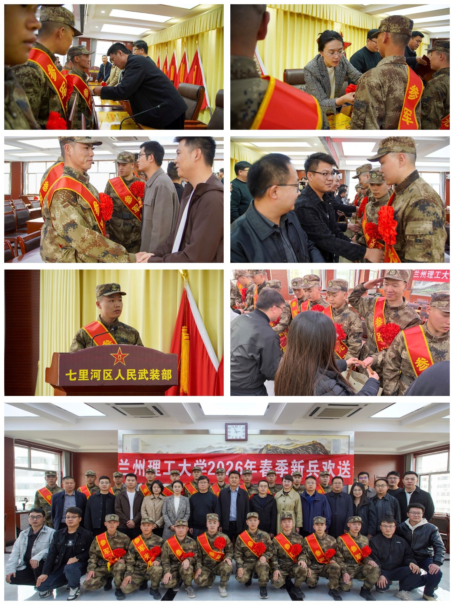 2026年3月12日下午,学校2026年上半年应征入伍新兵欢送会,在七里河区人民武装部会议室隆重举行。学校党委学生工作部副部长,相关学院党委副书记、征兵工作负责老师与全体即将入伍的新兵参加活动,共同见证这一光荣时刻。