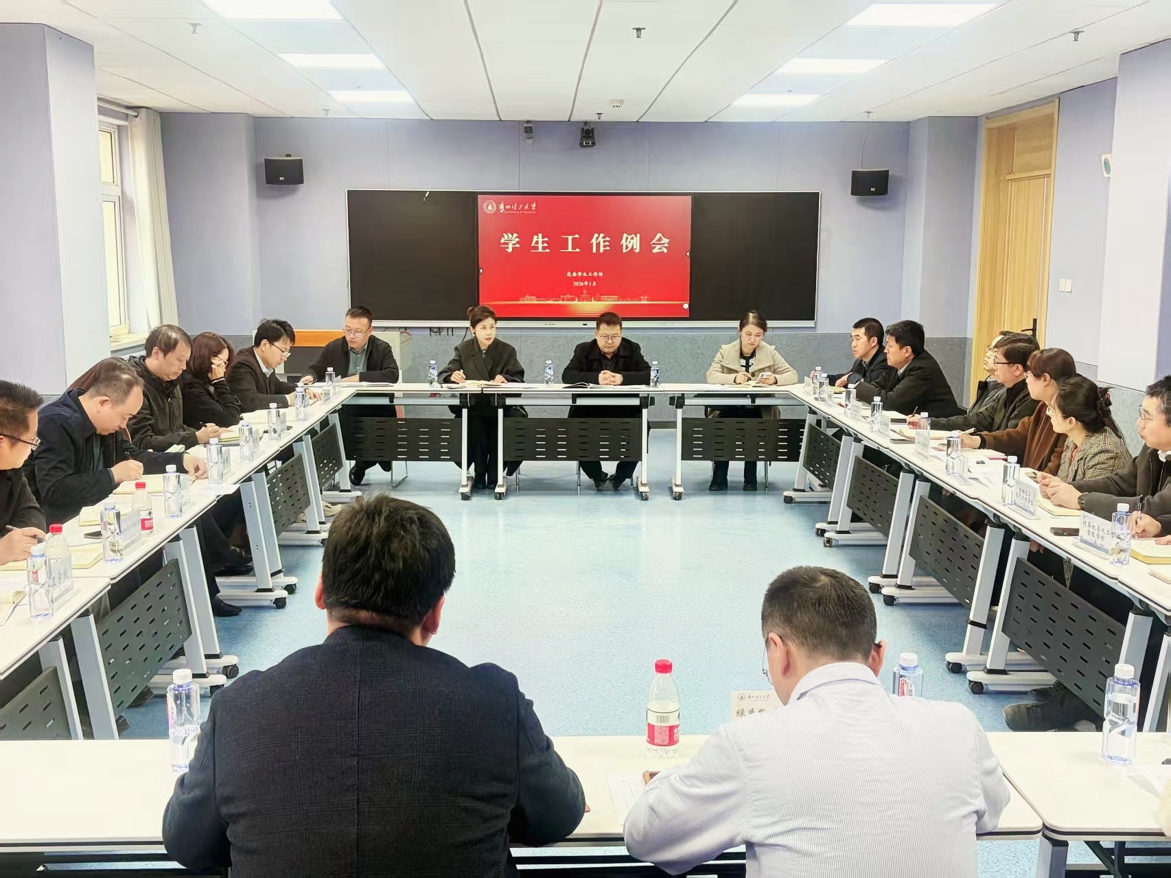 会议聚焦重点任务,部署了八项举措:一是聚焦健康第一,夯实身心根基。将“健康第一”理念贯穿育人全过程,完善心理健康教育与危机干预体系,深化体育健康促进,着力培养体魄强健、人格健全、意志坚强的新时代大学生;二是聚力学风建设,厚植育人沃土。以“学风建设年”为牵引,以学风建设专项调研为抓手,分类施策、精准发力,深挖根源、集思广益,形成靶向精准、务实管用的学风提升举措,推动学风建设从“抓规范”向“提质量”跃升;三是聚势数智赋能,升级治理效能。统筹推进学工系统、公寓门禁系统等平台建设,在实战应用中发现问题、补齐短板,全力推动数据互通、高效运转,以数字化、智能化手段提升精细化管理水平,在“抓执行促落实”中彰显治理能力现代化;四是聚责安全防线,守牢稳定底线。压紧压实意识形态工作责任制,加强日常管理、安全教育、法治教育、网络素养教育,健全风险隐患排查化解机制,提升突发事件应急处置能力。深化学生工作“五级六维”网格化管理,健全“横向到边、纵向到底”的责任体系,将风险隐患排查化解精准落实到每个网格单元。 推动心理健康教育与安全稳定深度融合,完善心理危机干预与应急处置联动机制,提升突发事件应急处置能力,确保安全责任落实到岗、落实到人;五是聚心文明创建,涵养校园风尚。以校园文明建设为载体,加强学生日常行为规范教育,持续开展文明校园、文明课堂、文明宿舍、文明网络等创建活动,推动文明理念内化于心、外化于行,营造积极向上、和谐有序的育人氛围;六是聚能队伍建设,激发内生动力。以辅导员队伍建设为核心抓手,优化选聘、培训、考核、激励机制,明确辅导员工作室功能定位,推进辅导员工作室赋能提质,充分发挥其在专业化发展中的示范引领作用,打造专业化、职业化、专家化的骨干力量,将“三抓三促”要求转化为队伍建设的硬核实效;七是聚情社区文化,拓展育人空间。深入推进“一站式”学生社区文化建设,结合学校工科优势和“卓越学风建设”要求,推动党建引领、学风建设、心理健康、就业指导、文化活动等育人资源下沉社区,打造具有兰理工特色的社区文化品牌,形成可复制可推广的经验做法,让社区真正成为学生的精神家园;八是聚焦就业攻坚,稳住民生底盘。全面进入冲刺状态,压实工作责任,以扩容提质为总抓手,坚持多措并举、精准帮扶,严格落实“一生一策”,全力以赴促进毕业生高质量充分就业,将就业工作作为检验巡视整改成效、服务学生成长的重要窗口。