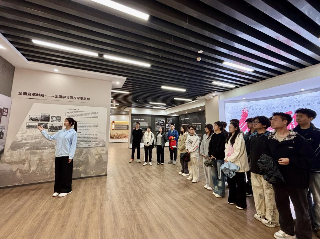 参观过程中,讲解员围绕国防历史、英模事迹、大学生征兵政策、国防科技前沿动态等内容进行细致讲解,师生们认真聆听、驻足观看,结合自身关注的国防科技发展、大学生参军入伍条件等问题,与讲解员展开深入交流互动,现场学习氛围浓厚。