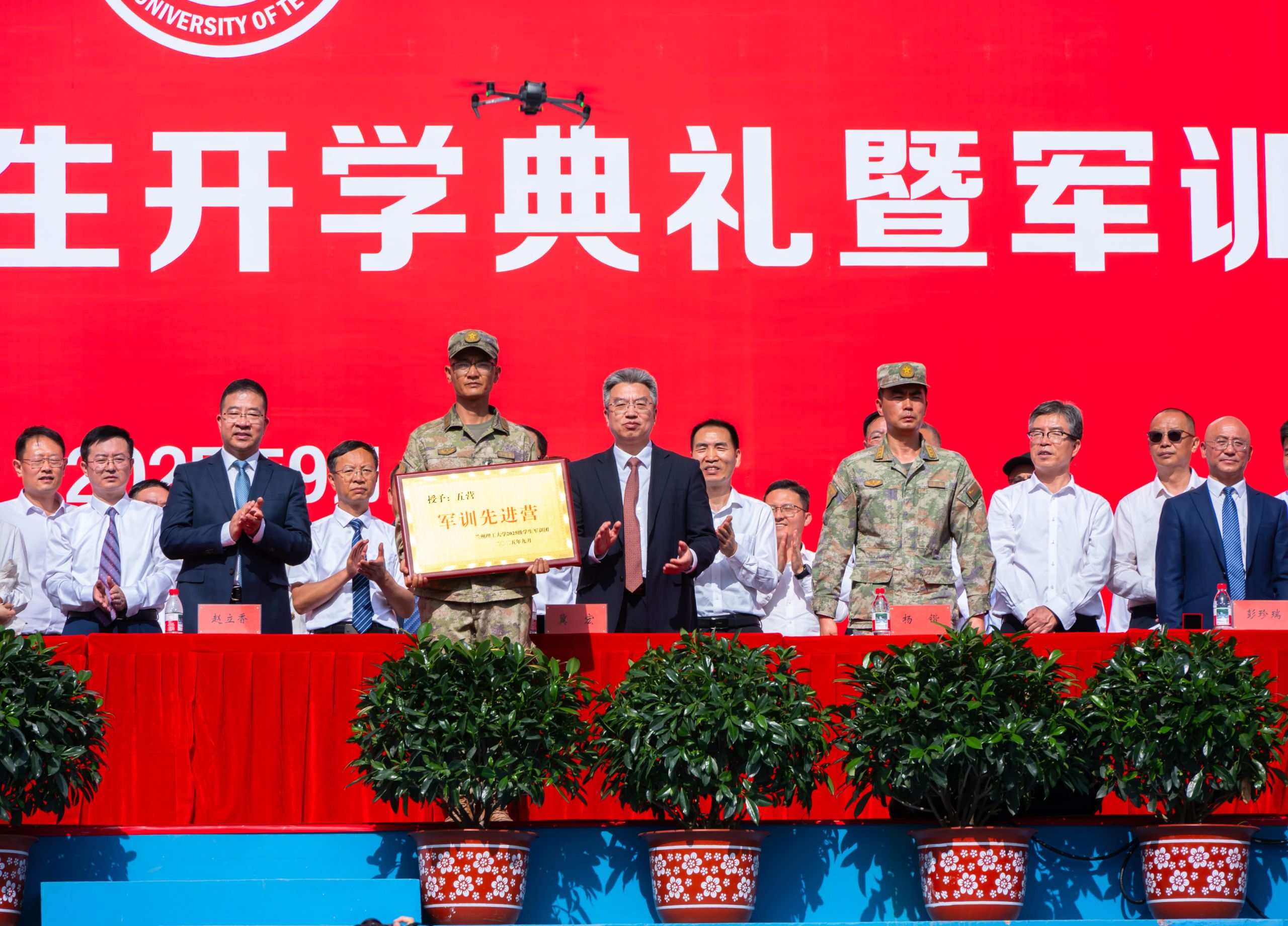 9月14日上午,兰州理工大学2025级新生开学典礼暨军训总结表彰大会在彭家坪校区田径场隆重举行。全体在校校领导、承训部队相关负责人、学校相关单位负责人、教师代表和8500余名2025级新生共同参加。