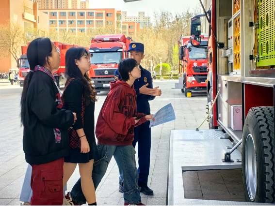 党委保卫工作部在彭家坪校区举办了主题为“全民国家安全教育走深走实十周年”的教育活动。上午,组织计通学院师生参观学校国家安全教育基地,师生通过丰富的图文资料、生动的视频展示、有序的模拟演练以及工作人员的讲解,学习了解了国家安全、自然灾害、消防安全和校园安全相关知识。参观过程中,校医院工作人员详细讲解并演示心肺复苏的操作步骤,指导同学们实操按压位置、力度和频率,学习如何处理异物堵塞呼吸道和心脏骤停的紧急情况,培养同学们的应急救助能力。下午,兰州市消防救援支队重型机械救援大队在彭家坪校区图书馆广场开展消防安全知识培训和应急演练活动。消防救援大队队长结合高校实际情况,通过典型火灾案例,分析了校园火灾的常见原因、危害及预防措施,向师生展示了消防车出水救援过程,并组织师生观摩各类消防后勤保障车辆,提高师生消防安全意识和应急处置能力。